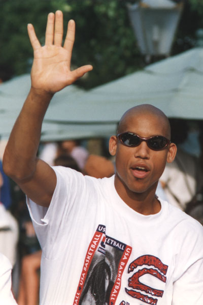 This picture of Reggie Miller was taken at Walt Disney World's Epcot Center, 2 days before the start of the Olympics in Altanta, Georgia. Here's where you'll find more photos of Dream Team III. |