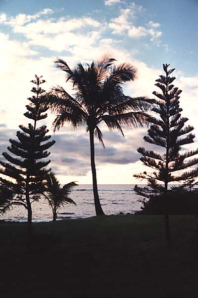 3 trees, silhouetted against the Pacific early one morning; at Poipu Beach (Kauai, Hawaii). |